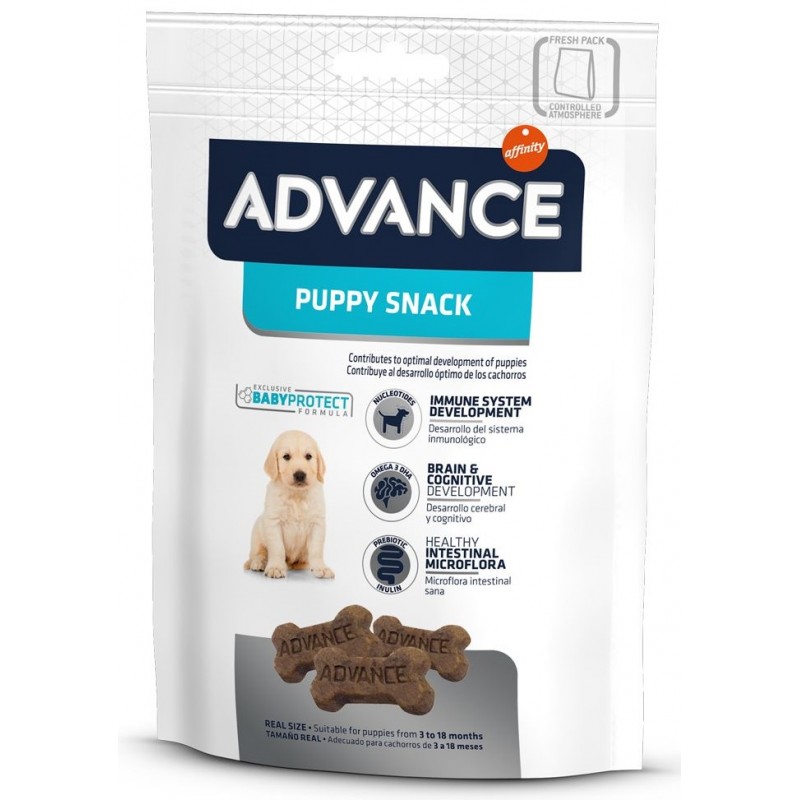 ADVANCE Puppy Snack è un biscotto morbido e appetitoso che grazie alla sua formula esclusiva contribuisce allo sviluppo ottimale del tuo cucciolo. Contiene nucleotidi che stimolano i meccanismi di difesa favorendo lo sviluppo del sistema immunitario. Contribuisce inoltre allo sviluppo cerebrale e cognitivo grazie al contenuto di Omega-3 DHA, mentre la inulina con effetti prebiotici favorisce lo sviluppo di una microflora intestinale sana.