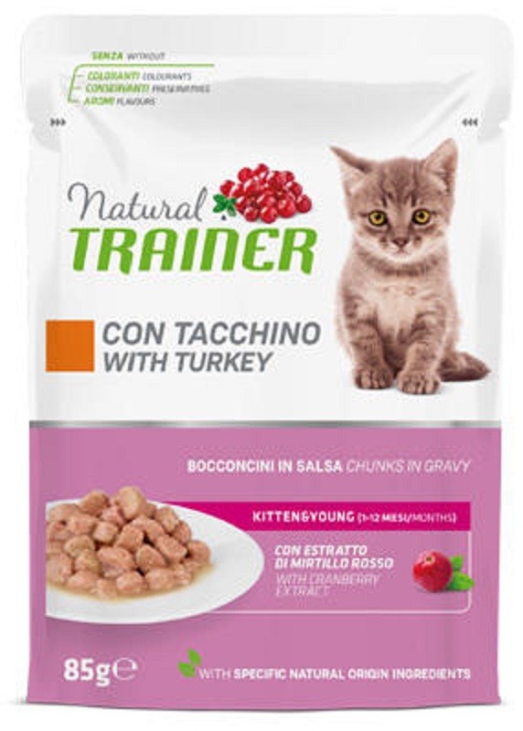 Nella pratica bustina monodose da 85 gr, Trainer Natural, racchiude la bontà dei bocconcini in salsa per gattini con meno di un anno di età. Senza coloranti e conservanti.