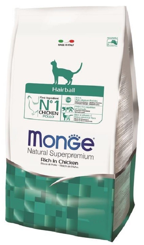 Il micio in continuazione si lecca. Si sta pulendo è vero, ma i peli che si attaccano sulla lingua vengono ingeriti formando boli di pelo nello stomaco, e cosi continua a rigurgitare croccantini o altro cibo ingerito.Come posso aiutarlo?Con la crema a base di malto, con l'erba gatto ma ancor di più con croccantini adeguati per dar maggior possibilità al gatto di eliminare in modo del tutto naturale i boli di pelo.Monge Natural Superpremium Hairball- I croccantini Monge Natural Superpremium Hairball sono un alimento completo per gatti adulti che soffrono più di altri l’accumulo di peli nello stomaco.