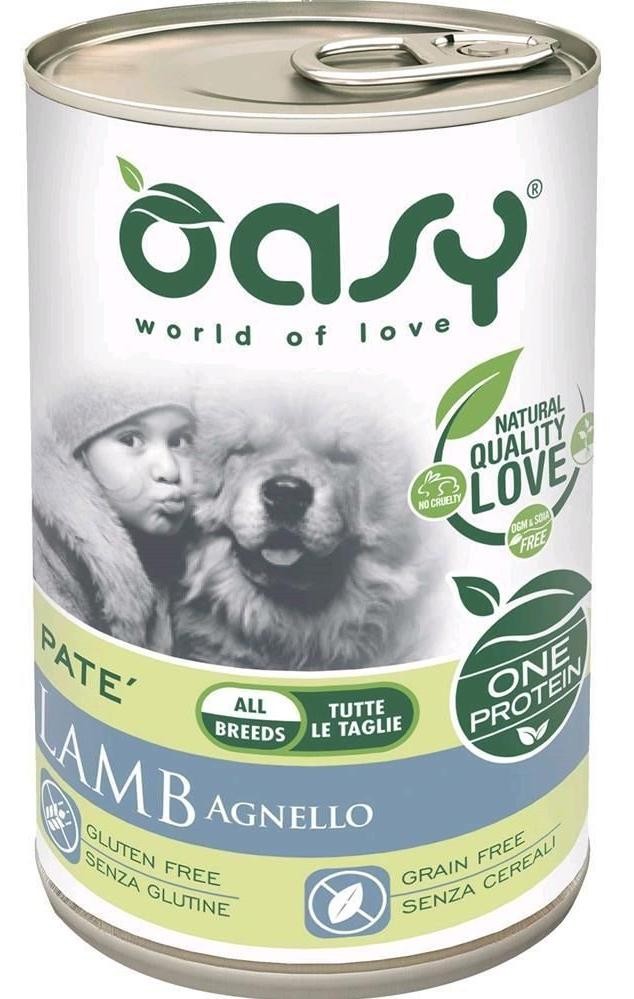 E' la linea di alimenti monoproteici umidi, ideali per cani con intolleranze alimentari, sensibilità intestinale e cutanea. Oasy One Protein è realizzata con ingredienti accuratamente selezionati, senza glutine, senza cereali, senza OGM e Soia e senza sperimentazione sugli animali.