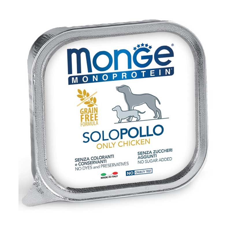 - Paté formulato con un’unica fonte proteica, pollo selezionato di altissima qualità.