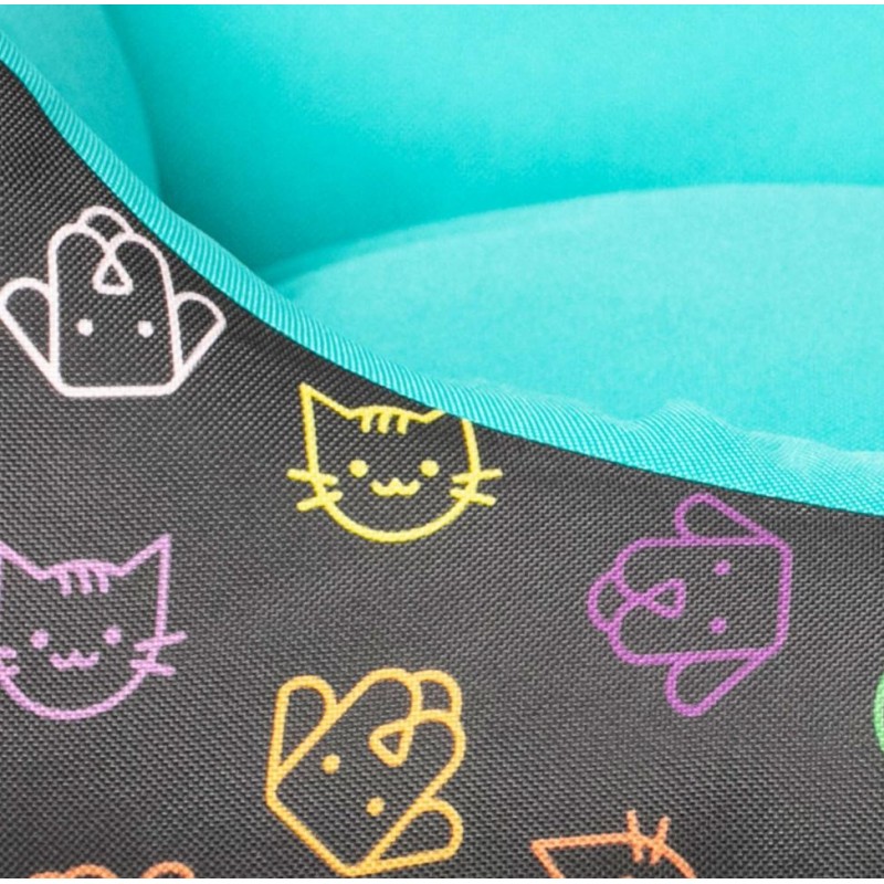 Il pattern vivace con icone di cani e gatti e l’interno verde aggiungono un tocco moderno e allegro, perfetto per abbinarsi a qualsiasi arredamento.