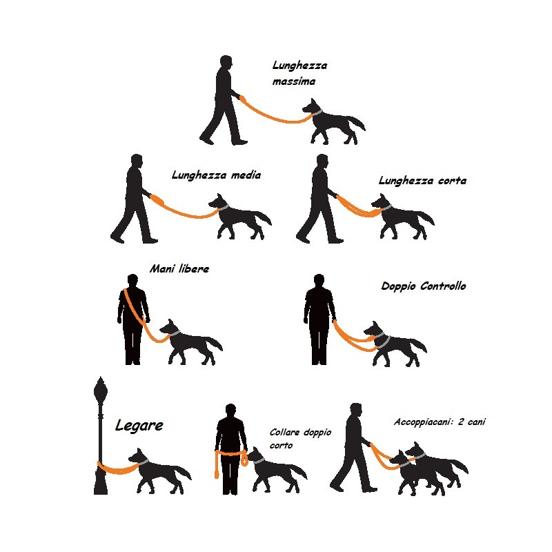 Il guinzaglio multifunzione ti permetterà di:- avere 3 possibilità di lunghezza (lungo, corto, medio)