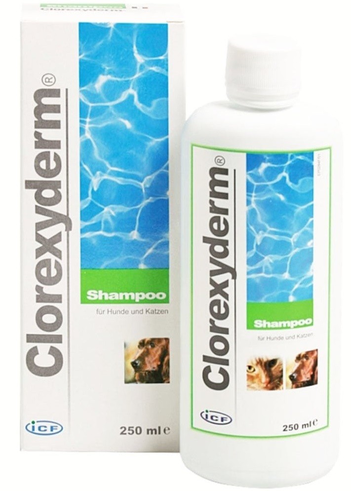 Clorexyderm shampoo è uno shampoo disinfettante ad ampio spettro a base di clorexidina, attivo nei confronti dei batteri Gram+ e Gram-.