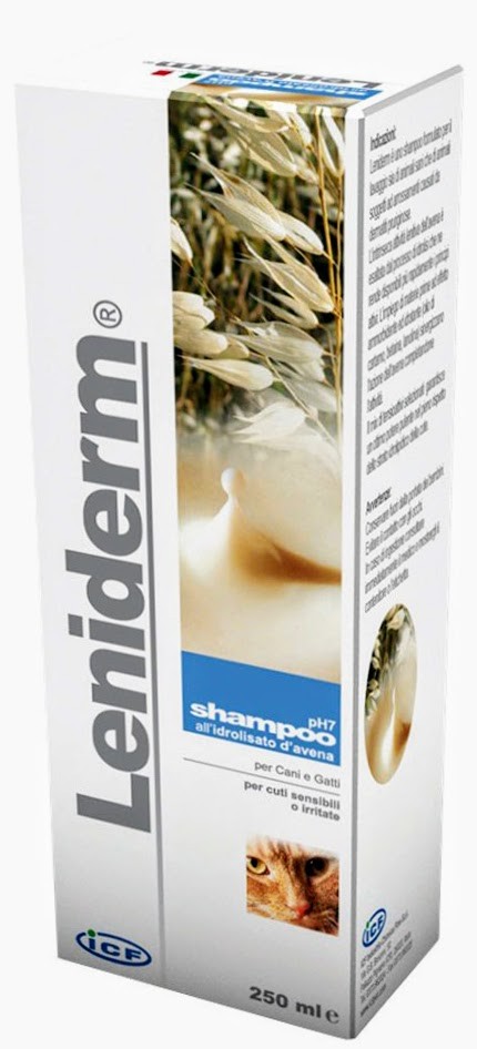 Leniderm® shampoo è indicato nel cane e nel gatto, formulato per il lavaggio sia di animali sani che di animali soggetti ad arrossamenti causati da dermatiti pruriginose.