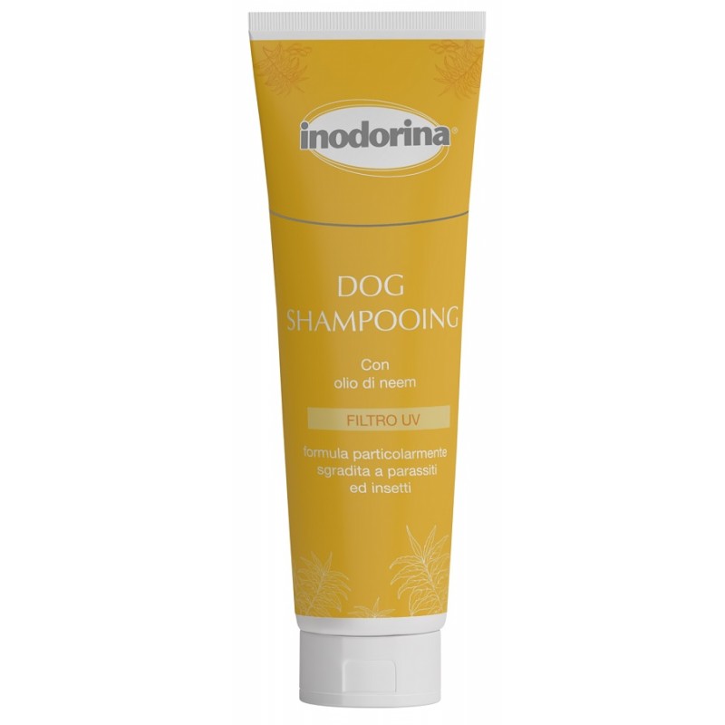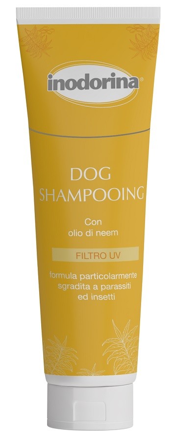 Pelo pulito? Manto igienizzato? Delicato profumo? Tutto questo si può! Con la nuova linea degli Shampoo Inodorina detergerai il manto del tuo animale senza rovinargli la cute e lo shampoo con l'estratto di neem terrà lontano parassiti.Lo shampoo con olio di Neem è un valido strumento naturale per contrastare la presenza sul cane di parassiti ed insetti. Lo shampoo deterge in profondità donando luminosità, vitalità e protezione al pelo del tuo cane.Consigli di utilizzo:Applicare lo shampoo sul pelo precedentemente bagnato con acqua tiepida (25°). Massaggiare uniformemente su tutto il manto in modo da formare schiuma, quindi sciacquare con acqua pulita. Si consiglia l’uso abbinato del balsamo ad azione districante per rendere il pelo facilmente pettinabile e corposo.Confezione da 250 ml