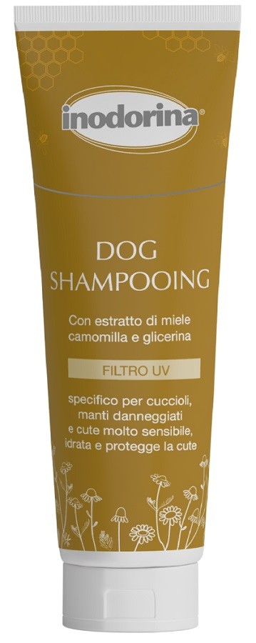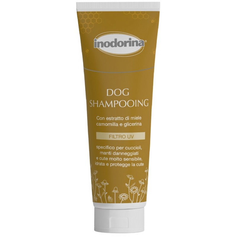 Pelo pulito? Manto igienizzato? Delicato profumo? Tutto questo si può! Con la nuova linea degli Shampoo Inodorina detergerai il manto del tuo cucciolo senza rovinargli la cute molto sensibile in questo periodo della sua vita.Lo Shampoo per Cuccioli, manti danneggiati e cute sensibile, grazie alla presenza degli estratti di Miele e Camomilla, svolge una riconosciuta azione rilassante e calmante.Consigli di utilizzo:Applicare lo shampoo sul pelo precedentemente bagnato con acqua tiepida (25°). Massaggiare uniformemente su tutto il manto in modo da formare schiuma, quindi sciacquare con acqua pulita. Si consiglia l’uso abbinato del balsamo ad azione districante per rendere il pelo facilmente pettinabile e corposo.Confezione da 250 ml