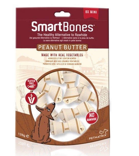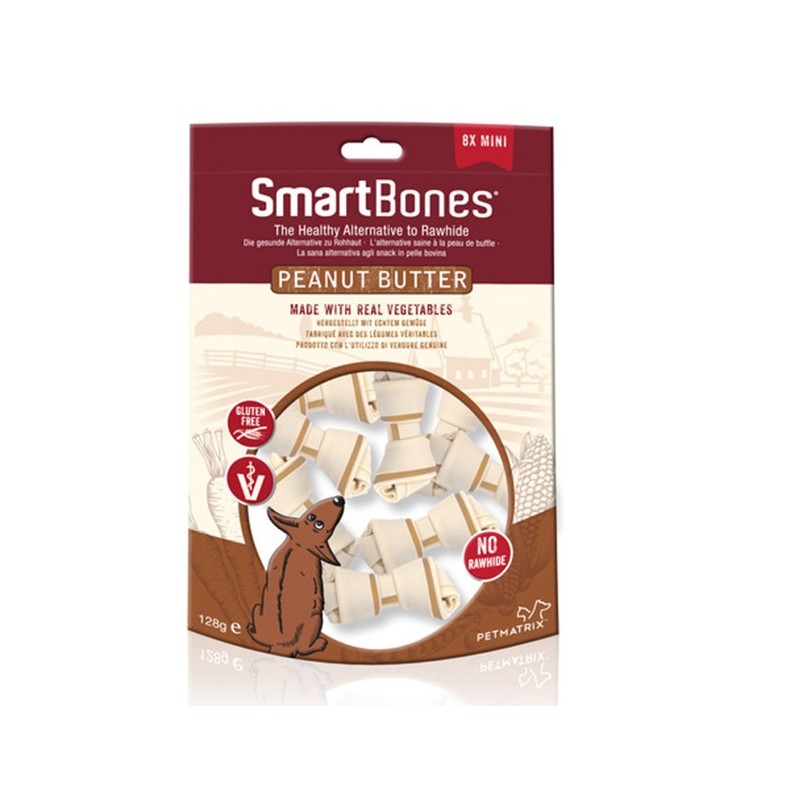 SmartBones Mini Bone Peanut Butter sono ossetti fatti con verdura e burro di arachidi Confezione da 128 gr = 8 mini ossetti