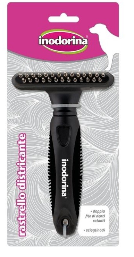 I denti rotanti con punte arrotondate aiutano a districare delicatamente i nodi e il pelo morto dal sottomanto del vostro cane. Questo pettine a rastrello è l’accessorio ideale per la toelettatura di cani a pelo medio e lungo.